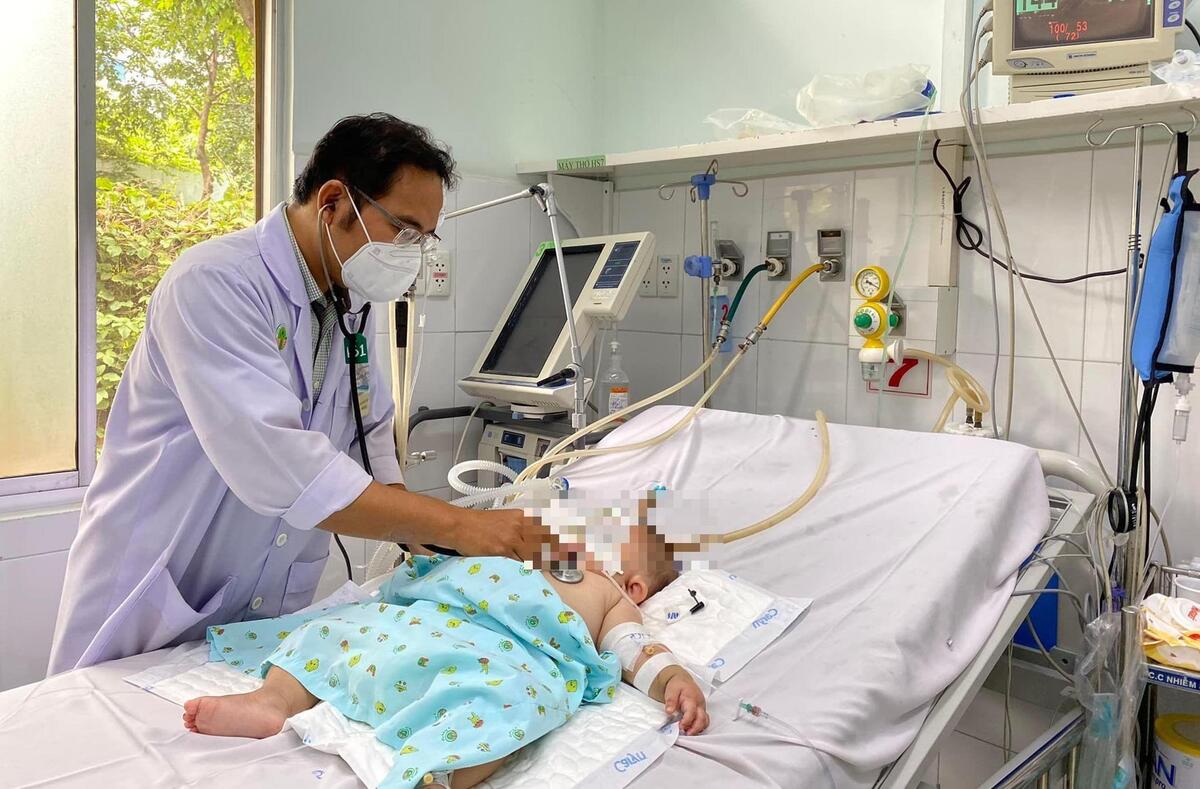Một bệnh nhi mắc sốt xuất huyết được các bác sĩ tích cực điều trị.