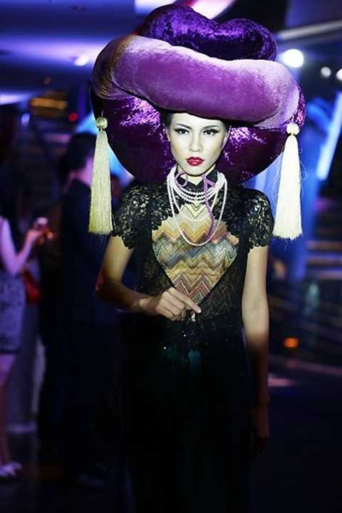 | Người mẫu với chiếc khăn xếp quá khổ trên đầu |