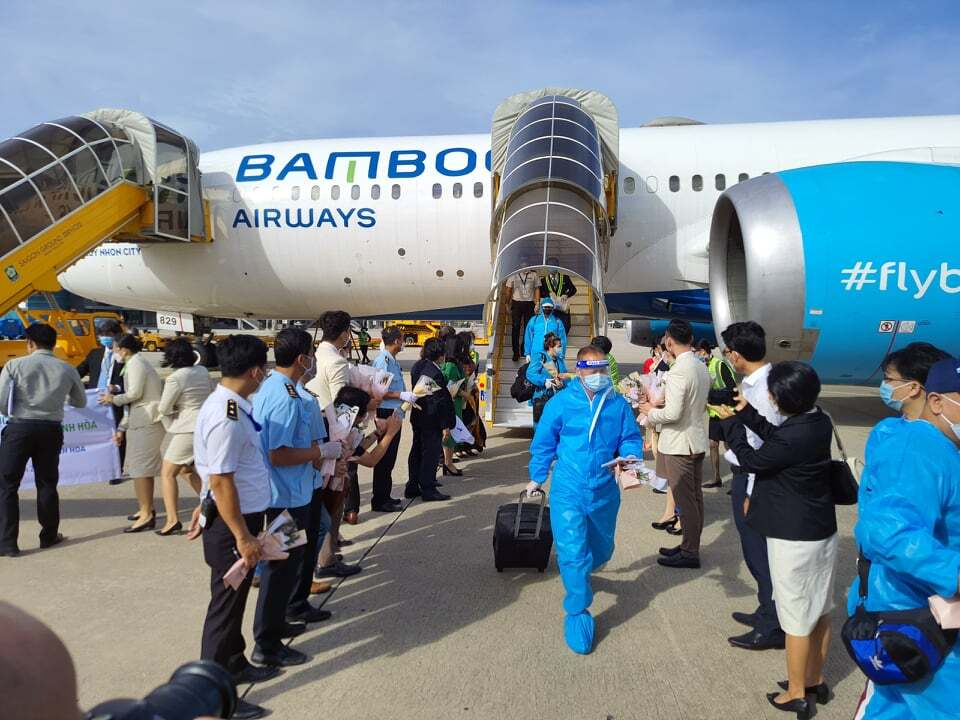 Chiều 25/11, chuyến bay của Bamboo Airways mang số hiệu QH9451 thực hiện hành trình Seoul (Hàn Quốc) - Nha Trang (Việt Nam) chở theo 293 du khách Việt kiều quốc tịch Mỹ, Canada có hộ chiếu vaccine tới Khánh Hoà đã hạ cánh tại sân bay quốc tế Cam Ranh.