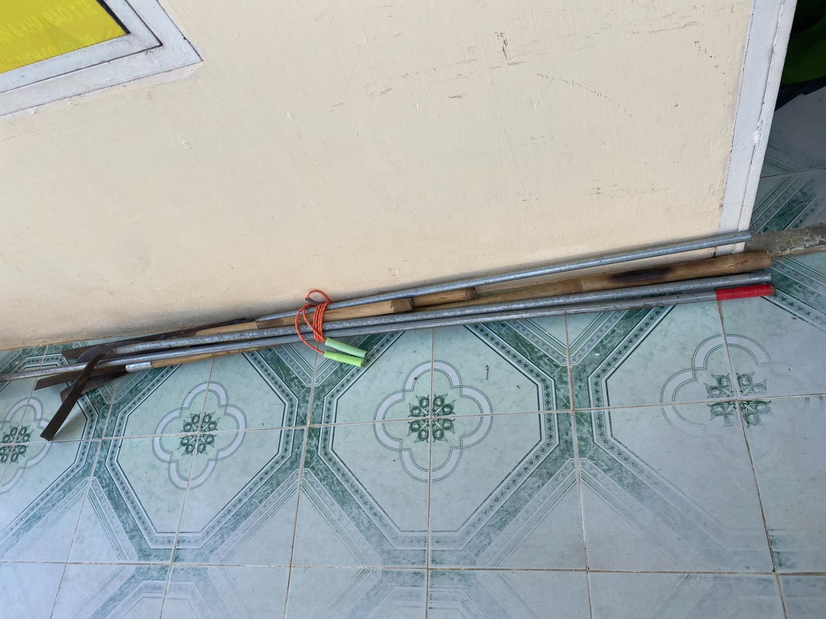 Tại hiện trường, cơ quan chức năng thu giữ nhiều dao phóng lợn.