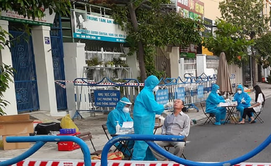 Ngành Y tế Khánh Hòa lấy mẫu xét nghiệm người dân liên quan ca mắc COVID-19.