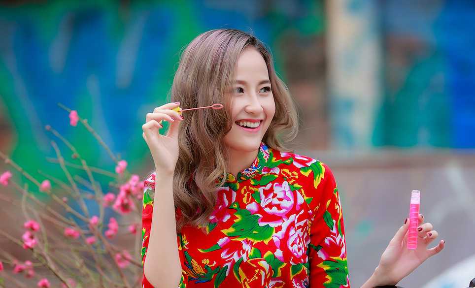 Vẻ đẹp rực rỡ cùng nụ cười toả nắng ngọt ngào của cô thật gây thương nhớ với Xuân Hà Nội.