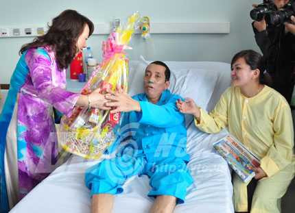 | Bộ trưởng Bộ Y tế Nguyễn Thị Kim Tiến thăm hỏi động viên bệnh nhân |