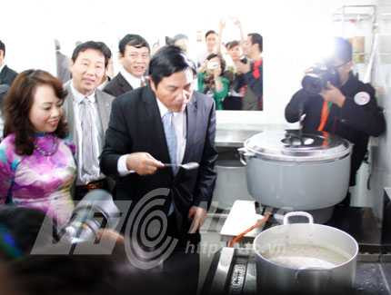 | Trưởng Ban Nội chính Trung ương, Bí thư Thành ủy Đà Nẵng Nguyễn Bá Thanh kiểm tra chất lượng cháo tại Bếp ăn từ thiện giành cho bệnh nhân nghèo |