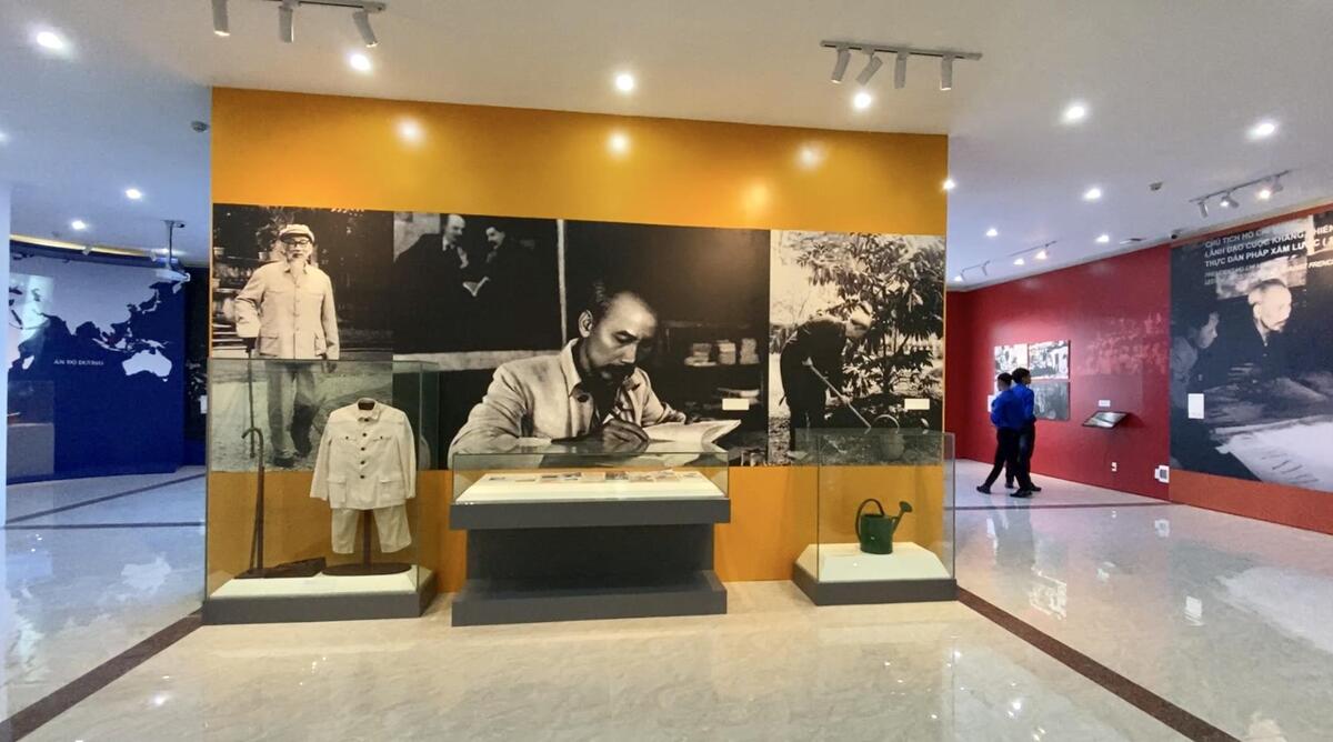Nhà trưng bày được khởi công ngày 17/10/2018 trong khuôn viên Khu Di tích cụ Phó bảng Nguyễn Sinh Sắc với tổng mức đầu tư hơn 9,5 tỷ đồng. Diện tích trưng bày 600m2, với trên 200 hình ảnh, hiện vật, được trưng bày theo 6 chuyên đề phản ánh một cách hệ thống cuộc đời, sự nghiệp hoạt động cách mạng của Chủ tịch Hồ Chí Minh gắn với từng giai đoạn lịch sử của dân tộc.