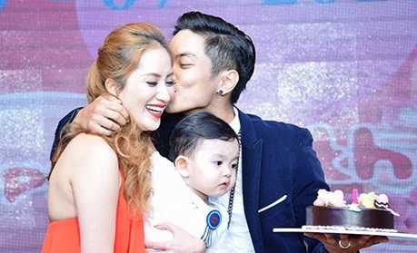 Khánh Thi - Phan Hiển hạnh phúc trong tiệc thôi nôi con trai.