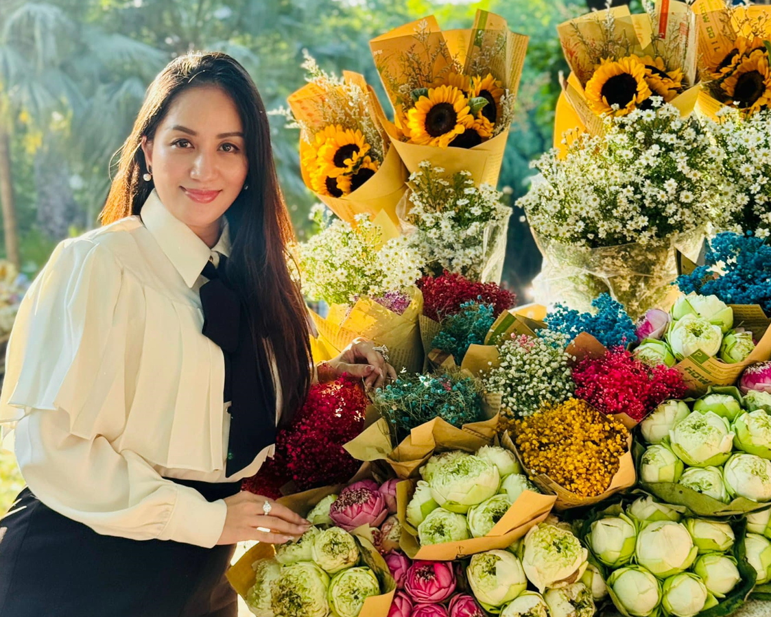 Dù chưa lấy lại vóc dáng thon gọn nhưng Khánh Thi vẫn tự tin khoe vẻ đẹp mặn mà, dịu dàng của "gái 3 con".