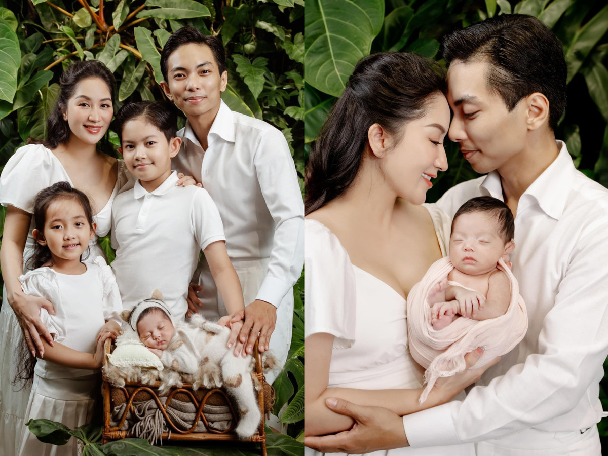 Nhân dịp đầy tháng con gái thứ ba, Khánh Thi chia sẻ hình ảnh gia đình hạnh phúc.