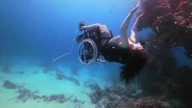 Khao khát tự do, cô gái đi xe lăn... lặn xuống biển