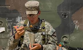 Suất ăn dã chiến của quân đội Anh bao gồm: xúc xích gà, đậu; mì ống cá ngừ Mexico; cơm thập cẩm Paella; bánh chanh; Compote; bánh quy; mứt mâm xôi; thanh ngũ cốc caramel; thanh mai; hạt điều muối; kẹo; mứt kem hạt phỉ phết bánh mì; nước trái cây; sô cô la nóng; cà phê; trà; nước xốt hạt tiêu; đường; viên thuốc lọc nước; giấy ăn; kẹo cao su; khăn ướt...