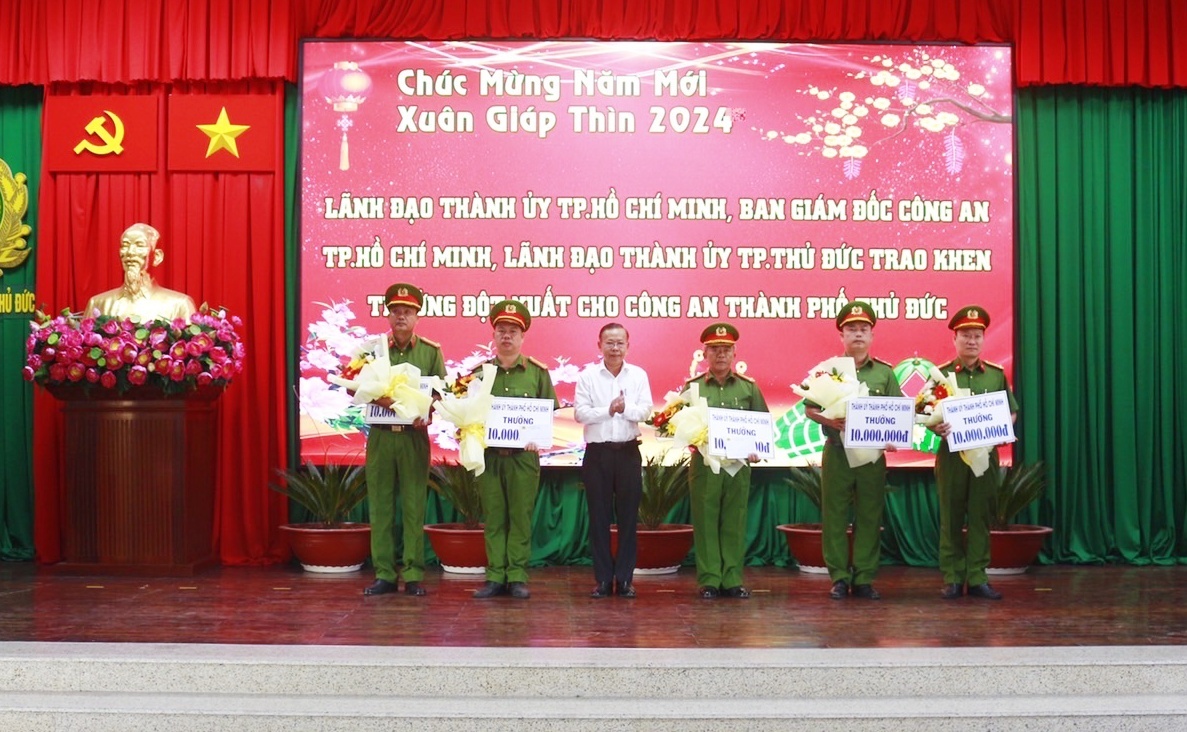 Cụ thể, 5 tập thể được Thành ủy TP.HCM khen thưởng, gồm: Đội Cảnh sát hình sự Công an TP Thủ Đức, Công an phường Tăng Nhơn Phú B, Đội Kỹ thuật hình sự Công an TP Thủ Đức, Văn phòng Cơ quan CSĐT (PC01) và Phòng Kỹ thuật hình sự (PC09) Công an TP.HCM.