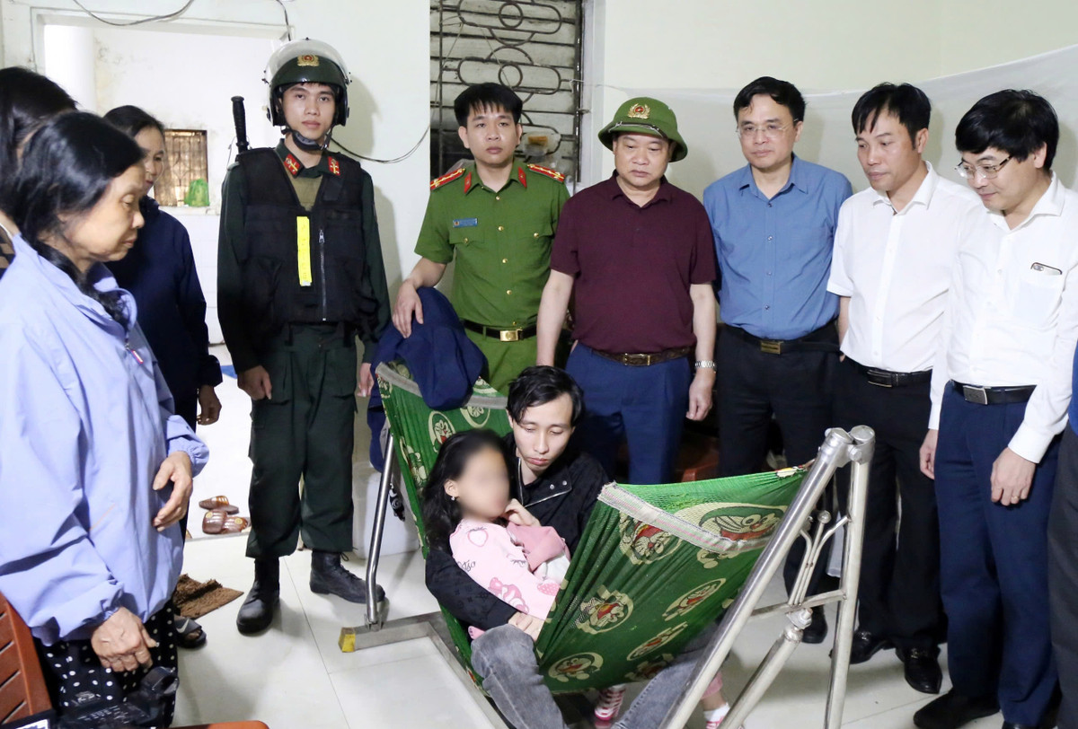 Lãnh đạo Công an tỉnh Bắc Ninh, thị xã Quế Võ tặng quà, động viên cháu T.