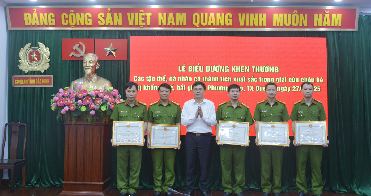 Nhân dịp này, Chủ tịch UBND tỉnh Bắc Ninh trao Bằng khen cho 3 tập thể, 3 cá nhân và trao thưởng cho 11 tập thể với tổng số tiền 140 triệu đồng; Chủ tịch UBND thị xã Quế Võ trao tặng Giấy khen cho các tập thể, cá nhân vì có thành tích xuất sắc giải cứu thành công cháu bé bị khống chế, bắt giữ tại phường Phượng Mao.