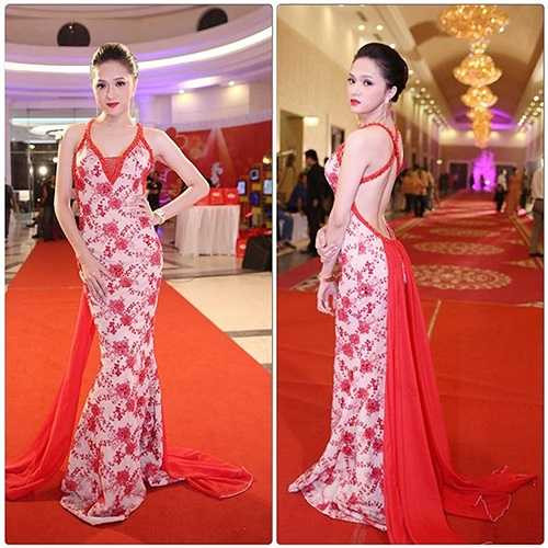 Hương Giang có lợi thế về chiều cao bởi vậy thiết kế váy đuôi cá cũng giúp cô khoe được nét quyến rũ.