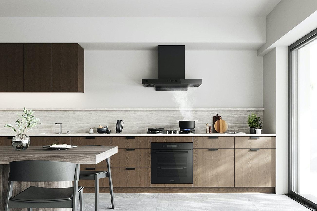 Khi bật máy hút mùi nên đóng cửa hay mở cửa bếp là thắc mắc của nhiều người. (Ảnh: Fujioh)