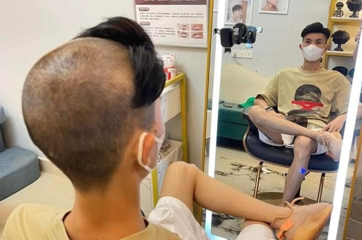 Cắt xong mái tóc không dám hé mặt ra nhìn đời.