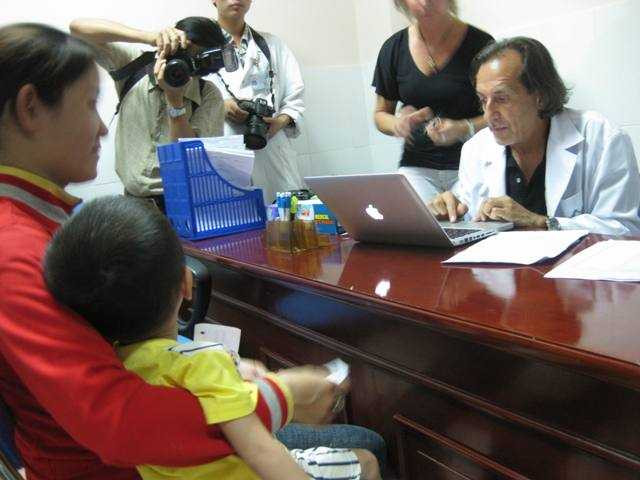 | GS. Roberto De Castro trong một lần khám cho trẻ bị khuyết tật bộ phận sinh dục. |