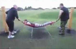 Chàng trai nằm trên võng để bạn đu cực nhanh, trò chơi rất thú vị nhưng kết cục quá bất ngờ.
