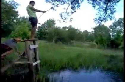 (VTC News) - Hai anh chàng say xỉn chơi trò đu dây, không may ngã nhào xuống vũng nước.