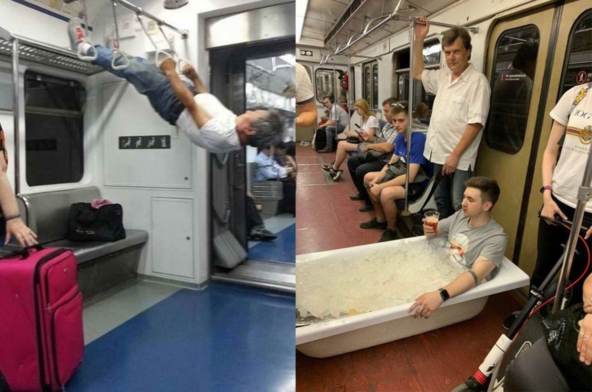 Rất may cho anh chàng là tàu không quá đông và vẫn có chỗ để chứa vật dụng kỳ quặc kia.