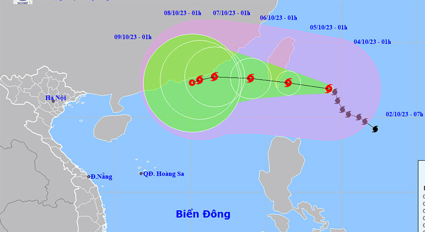 Dự báo đến 1h ngày 5/10, bão trên vùng biển phía Nam Đài Loan, di chuyển theo hướng Tây Tây Bắc, mỗi giờ đi được khoảng 10km, sức gió mạnh nhất vùng gần tâm bão cấp 13, giật cấp 16. Khu vực chịu ảnh hưởng: Phía Đông Nam Đài Loan, phía Đông Bắc khu vực Bắc Biển Đông.