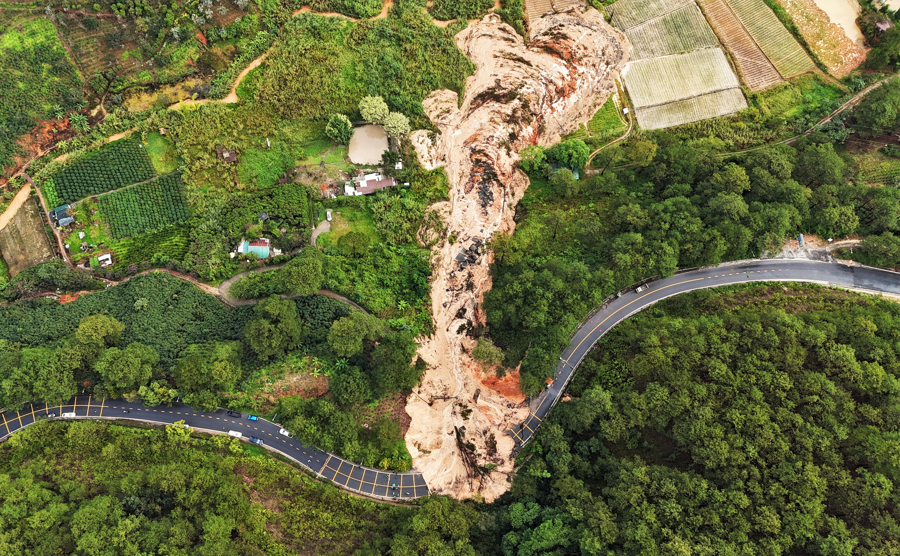 Cận cảnh đất đá trên núi "chảy" xuống, phá vỡ đèo Mimosa và uy hiếp tính mạng người dân trong đợt mưa lũ cuối tháng 11/2025.