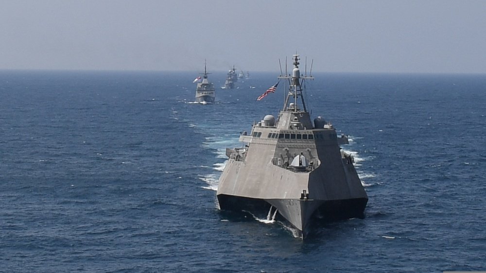 Các tàu chiến di chuyển theo đội hình kim cương, dẫn đầu là tàu tuần tra xa bờ HTMS Krabi của Thái Lan. Tàu hải quân Việt Nam đi sau cùng trong đội hình. (Ảnh: Dvids Hub)