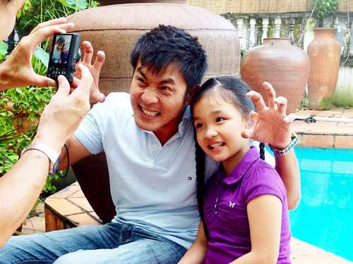| Thầy chụp hình "xì tin" với diễn viên nhí đóng vai con gái |