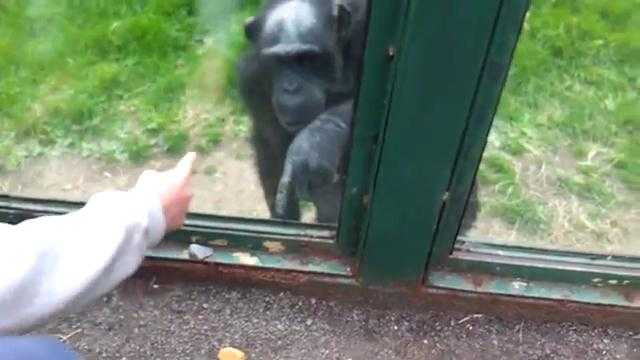 (VTC News) - Chú khỉ thông minh trong vườn thú cố chỉ tay ra hiệu nhờ khách tham quan mở cửa cho nó ra ngoài.
