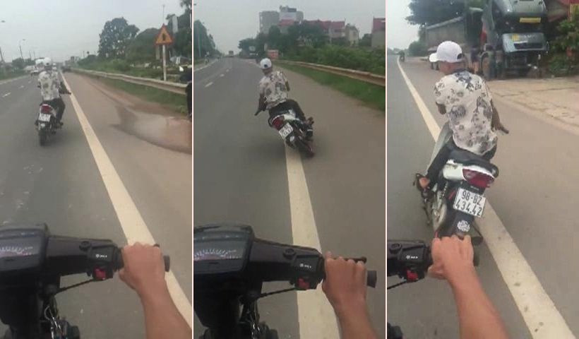 Nam thanh niên không đội mũ bảo hiểm, điều khiển xe máy lạng lách đánh võng trên đường có nhiều phương tiện qua lại tại Phố Tráng, huyện Lạng Giang, Bắc Giang khiến dư luận bức xúc.