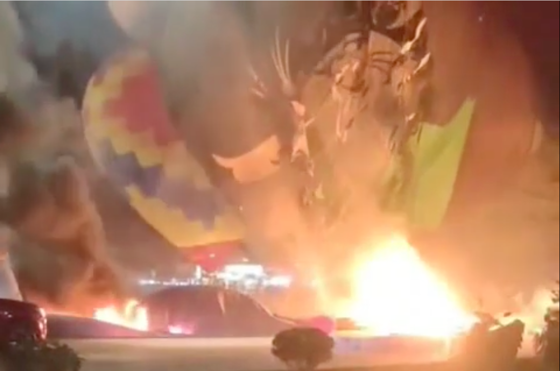 Theo đoạn video trên mạng xã hội, chiếc khinh khí cầu có kích thước lớn bốc cháy dữ dội tại quảng trường, một số người dùng bình chữa cháy nhỏ để dập lửa nhưng không thành công. Bất ngờ, ít nhất 2 tiếng nổ lớn phát ra kèm khói đen bốc lên khiến nhiều người chứng kiến hoảng sợ bỏ chạy.
