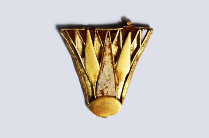 Mặt dây chuyền vàng hình hoa sen xanh - biểu tượng đặc biệt của người Ai Cập. (Ảnh: Peter Fischer)