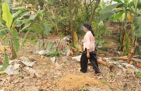 | Dấu vết khu vườn bị gia đình bà T. đào bới nham nhở tìm kho báu |