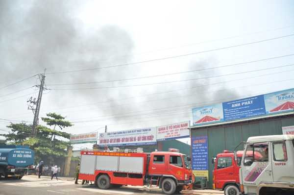 Khói đen bao phủ khu vực nhà kho rộng hàng trăm mét vuông.