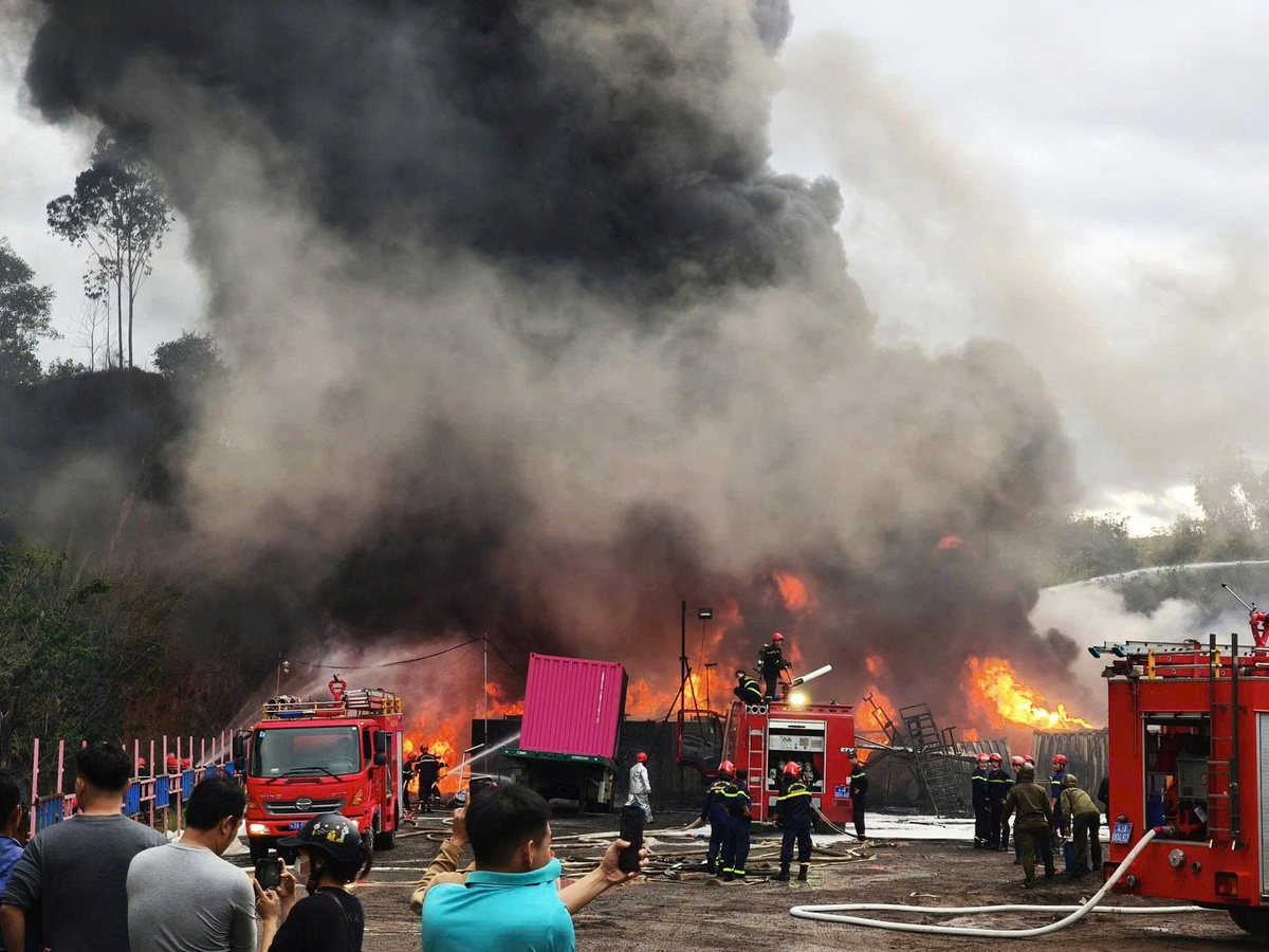 Từ xa, có thể thấy cột khói đen khổng lồ bốc cao hàng trăm mét, bao trùm toàn bộ khu vực.