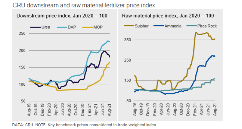 Biểu đồ giá phân bón và nguyên liệu.