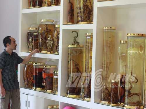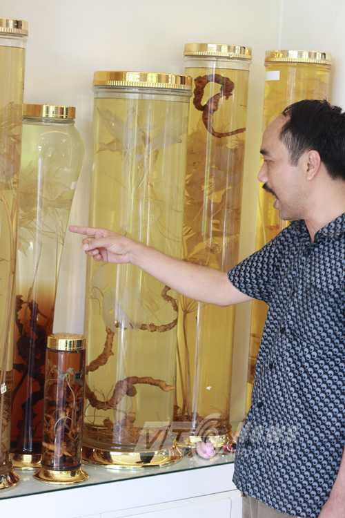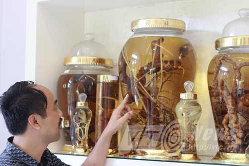 | Anh Tuyền bên những bình rượu sâm tuyệt đẹp |