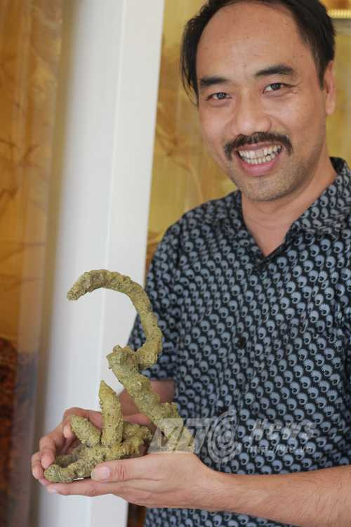Trong số những củ sâm trưng bày ở gian ngoài, thì anh Nguyễn Thanh Tuyền nâng niu nhất và cũng kể nhiều chuyện nhất về củ sâm mà anh gọi là "mãng xà".