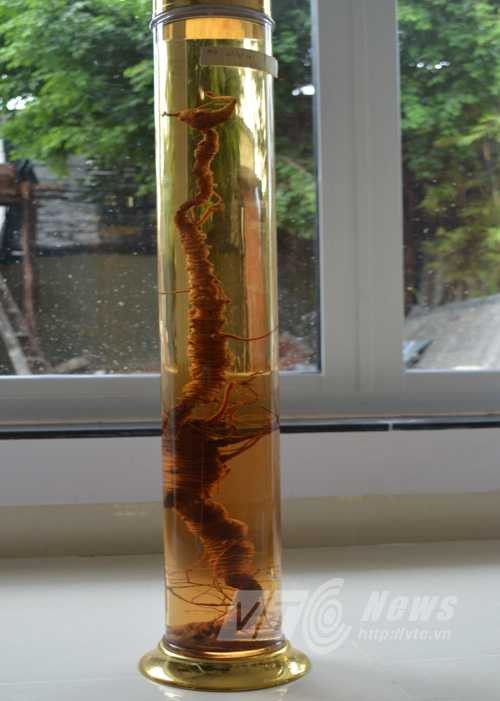 Giờ đây, củ sâm ấy đã an vị trong bình rượu và điều đặc biệt là nó vẫn giữ được tạo hình độc đáo. Còn anh Tuyền, vì quá mê tạo dáng của những củ sâm, mà anh bỏ ra cả trăm triệu đồng, chỉ để tạo hình 3D và đúc ra những củ sâm bằng polime cao phân tử y hệt về kiểu dáng, kích thước, trọng lượng những củ sâm mà anh sở hữu.