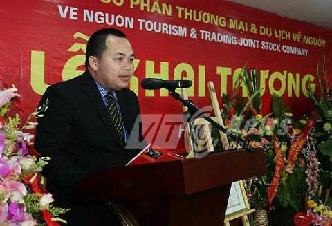 | Lê Trung Tuấn trong buổi lễ khai trương doanh nghiệp do chính vợ chồng anh xây dựng lên |