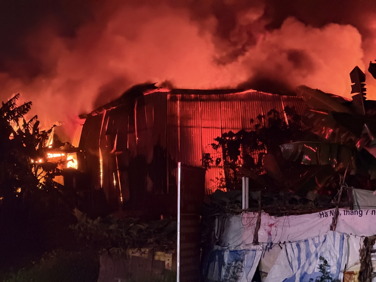 Khoảng 0h40 ngày 30/3, lửa bùng lên tại kho xưởng chứa đồ gỗ nằm cuối đường Phạm Tu, đối diện Bệnh viện K Tân Triều, phường Thanh Liệt, Hà Nội.