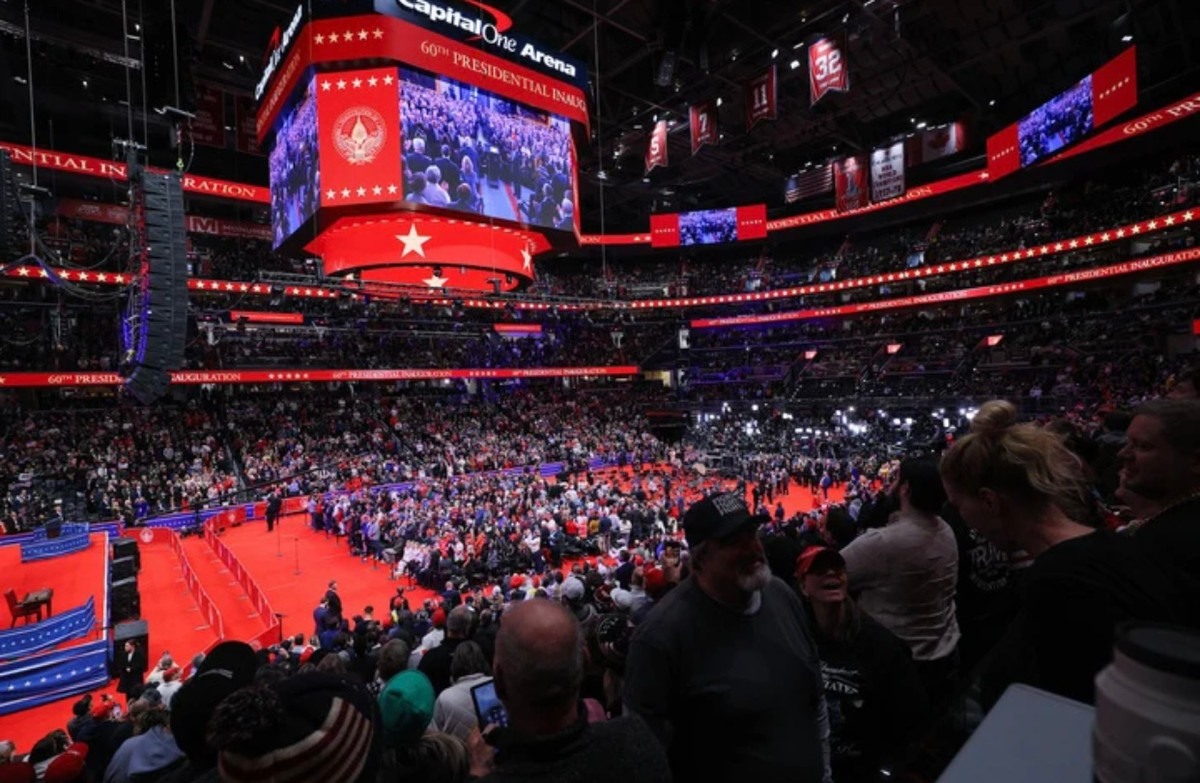 Hàng nghìn người có vé tham dự sự kiện ngoài trời không thể chen chân vào địa điểm tổ chức trong nhà. Ông Donald Trump khuyến khích những người ủng hộ mình thay vào đó hãy tham dự buổi xem trực tiếp sự kiện tại sàn đấu Capital One Arena tại Washington.