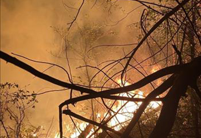 Ngọn lửa bùng lên dữ dội do thời tiết hanh khô. (Ảnh: TTXVN phát)