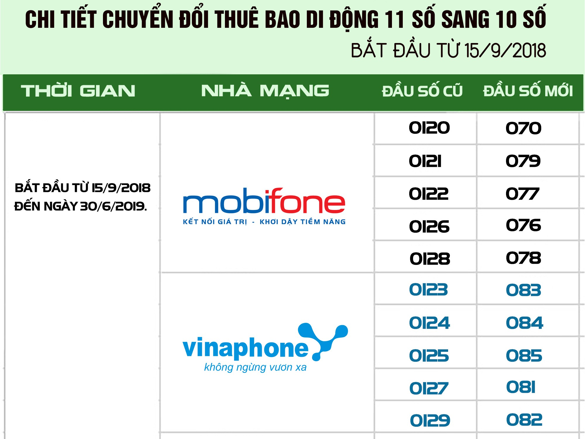 Sau ngày 30/6/2019, thông báo này sẽ kết thúc, cuộc gọi sẽ chỉ thực hiện thành công khi người sử dụng quay số theo mã mạng mới.