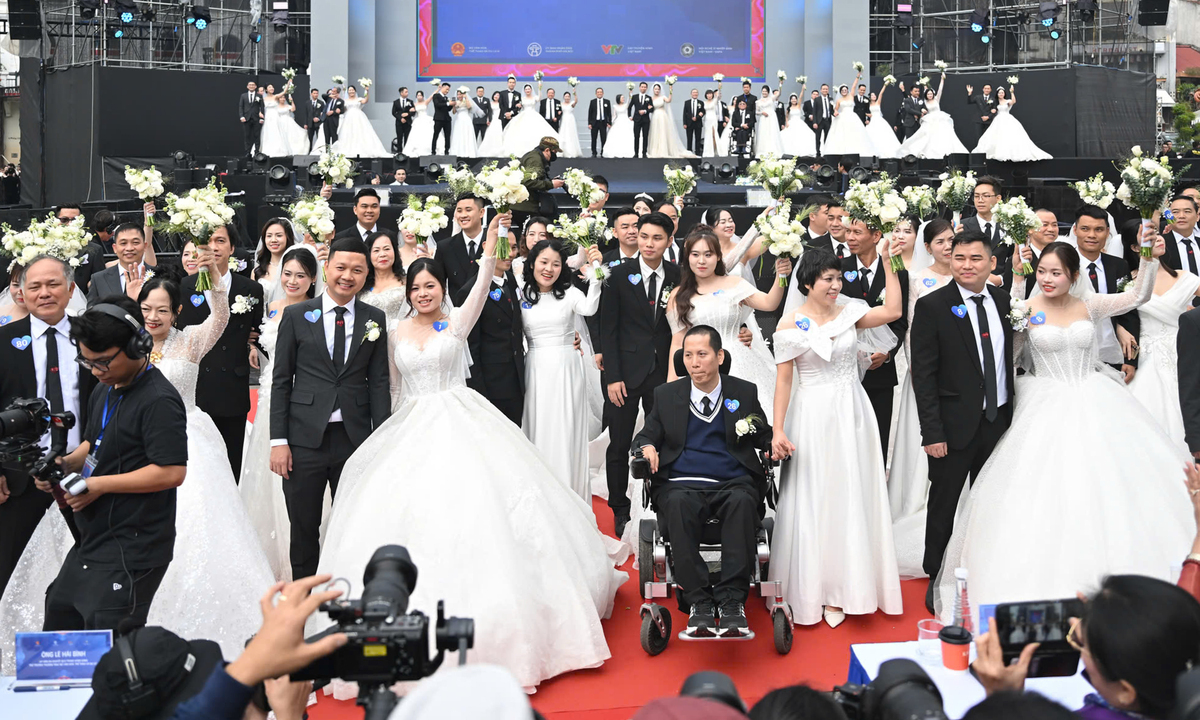 Nụ cười rạng rỡ, cái siết tay đầy tin tưởng và sự hiện diện của hàng nghìn người chứng kiến đã biến lễ cưới tập thể thành một khoảnh khắc khó quên ở trung tâm Thủ đô.