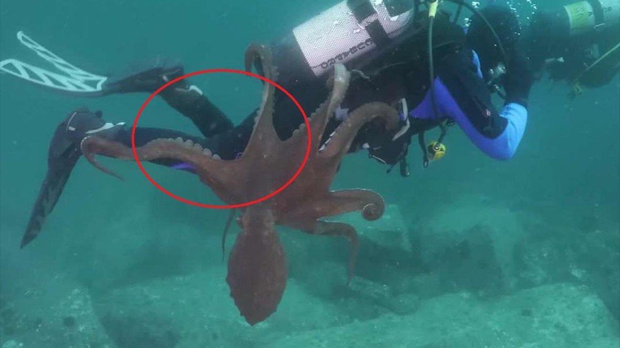 Khoảnh khắc bạch tuộc dùng xúc tu quấn thợ lặn tại vùng biển Nhật Bản