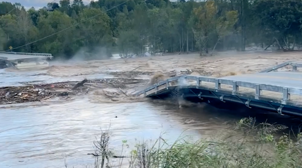 Một video gần đây cho thấy khu vực bị ảnh hưởng ở Đông Tennessee, nơi sông Nolichucky dâng cao và tạo ra một dòng chảy mạnh cuốn trôi cây cối và các mảnh vỡ khác ở hạ lưu, bao gồm cầu Kisner trên đường cao tốc 107 ở thị trấn Afton.