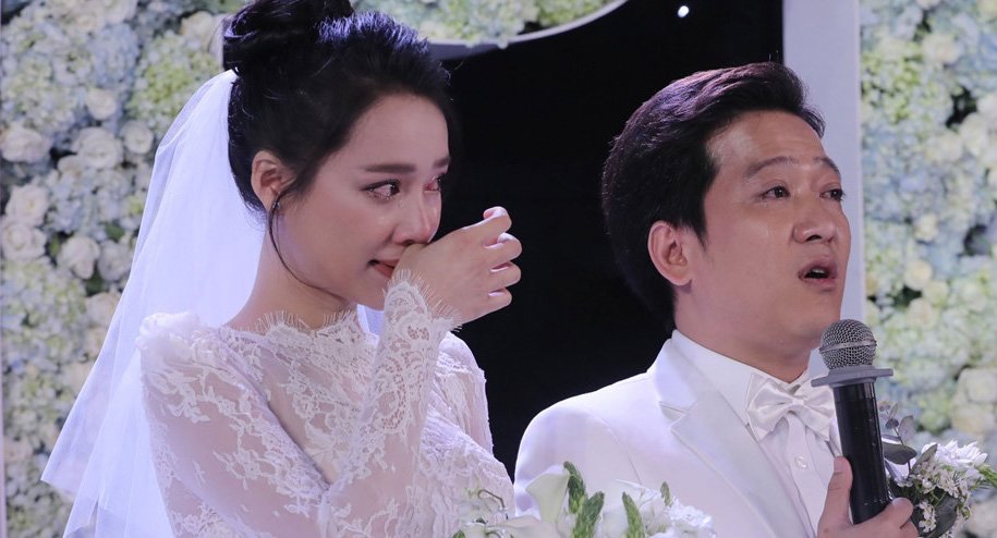 Buổi tiệc diễn ra trong không khí ấm cúng và xúc động. Đây có lẽ là lễ cưới có nhiều nước mắt nhất trong giới showbiz Việt vài năm nay. Cô dâu, mẹ cô dâu, chú rể cùng cha và cậu chú rể đều khóc khi chia sẻ niềm hạnh phúc của gia đình. Trường Giang tâm sự anh và Nhã Phương đều cố không khóc vì sợ khiến buổi lễ mất vui. Nhưng rồi cả hai đều không thể kiềm chế những giọt nước mắt.