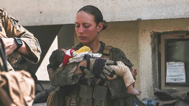 Đó là khoảnh khắc được chụp lại từ sân bay Kabul, nơi Gee và các đồng nghiệp trong lực lượng thủy quân lục chiến Mỹ hỗ trợ hàng chục nghìn người sơ tán khỏi Afghanistan.