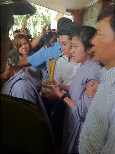 Em gái Quỳnh Mi của Wanbi Tuấn Anh không giữ được bình tĩnh khi linh cữu của anh trai từ tự hạ xuống để hỏa táng. Cô bật khóc vào lao vào nhưng mọi người kịp ngăn chặn.